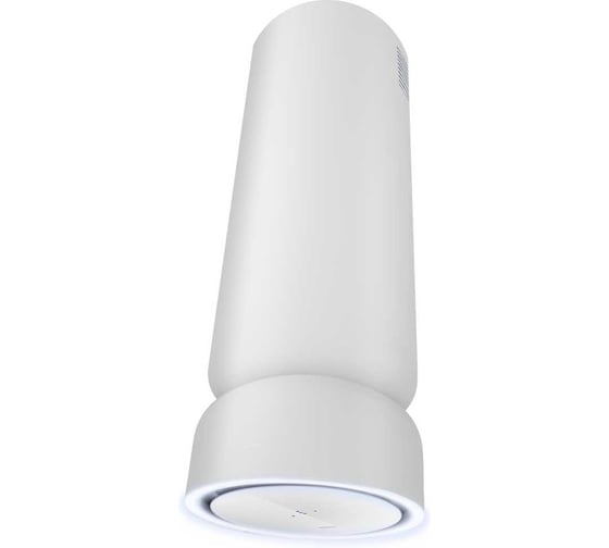 Вытяжка выполнена в форме вертикальной трубы. Ее корпус имеет однородную, гладкую поверхность, что подчеркивает целостность и лаконичность дизайна, придавая прибору современный и сдержанный вид, идеально вписывающийся в различные стили интерьера.