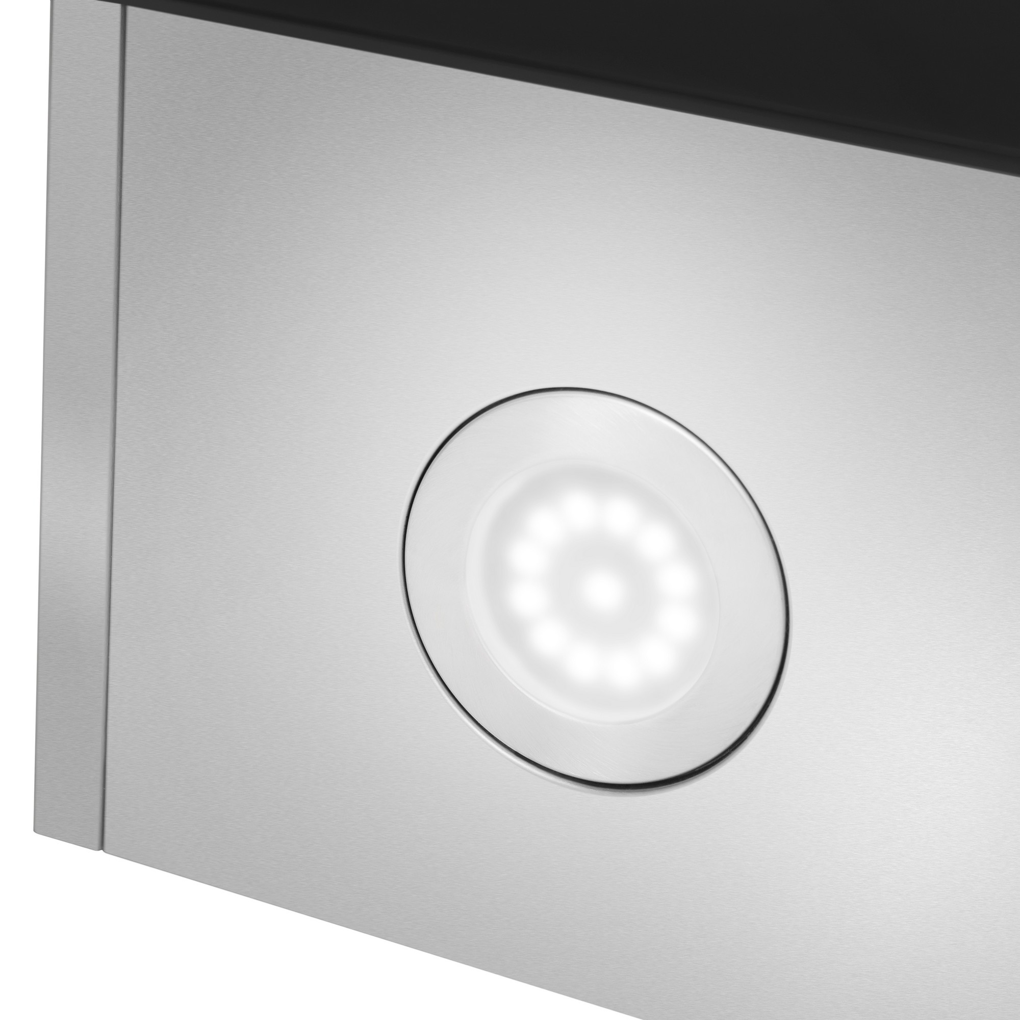 Кухонная вытяжка MAUNFELD MERSEY 90 Inox Glass BLACK шириной 90 см монтируется на стену над варочной панелью. Оптимальное решение для кухни площадью до 40 кв.м.
