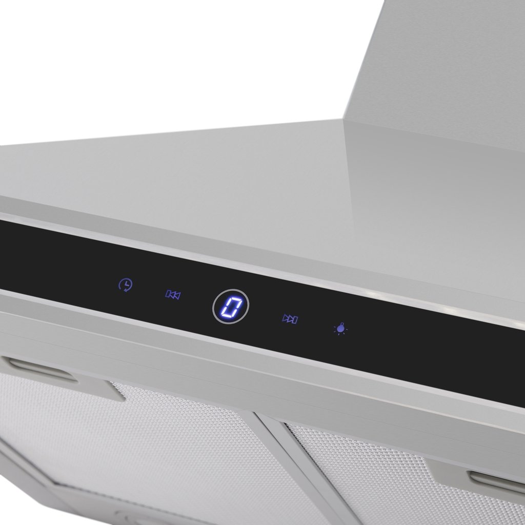 Современная система управления На фронтальной панели вытяжки MAUNFELD CORK Plus 60 Inox находится сенсорный механизм для управления скоростями и режимами. |