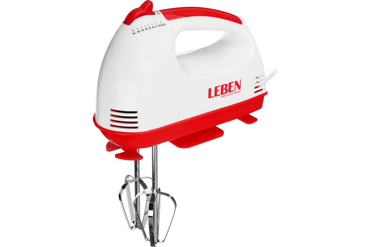 Кухонный миксер LEBEN 100 Вт, 7 скоростей, 4 насадки с коробочкой 269-012 предназначен для бытового применения.