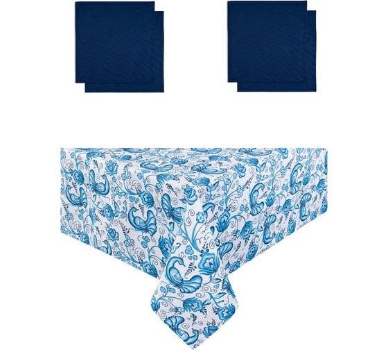 Кухонный набор Guten Morgen рогожка, Синяя птица, скатерть+салфетки, 110x140 см, 40x40 см, 4 шт. НКСпт-110-140-40-40-4