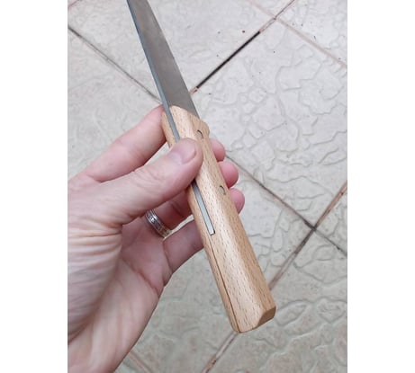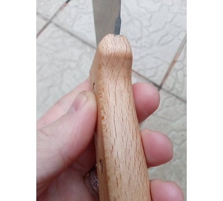 Через ЧЕТЫРЕ дня рукоять пошла трещинами, появились щели между обухом и рукоятью. И всё это без видимых причин, без замачивания в воде, без посудомоечной машины ( которой просто нет)