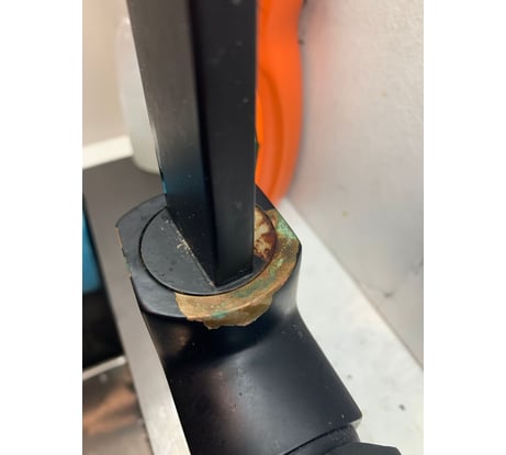 Некачественный смеситель. Через месяц работы образовался свищ на изгибе лейки.