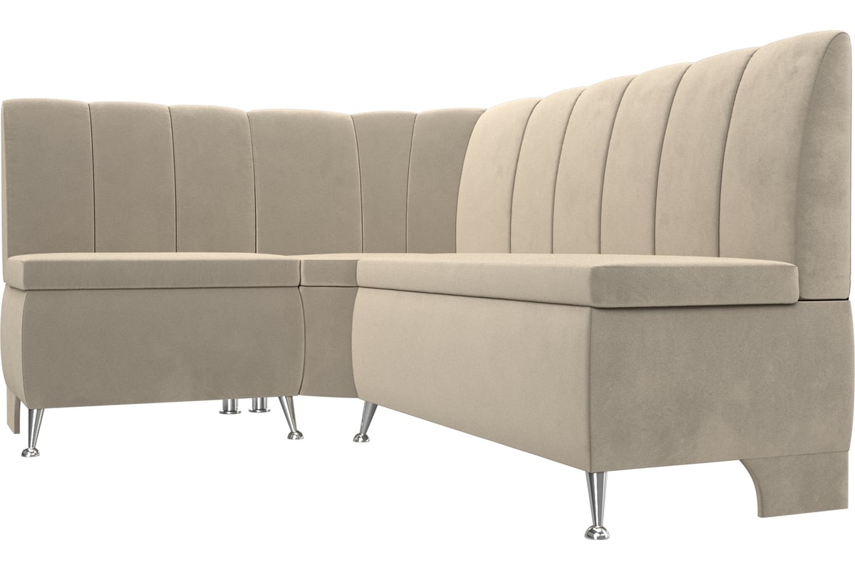 Компактный угловой диван Кантри – именно то, что нужно для полноценного обустройства кухни. Он удобный и функциональный. Под продольными сиденьями находятся вместительные ящики. Угол сплошной, не открывается. Модель практичная: водоотталкивающая ткань идеально подойдет для семей с маленькими детьми.