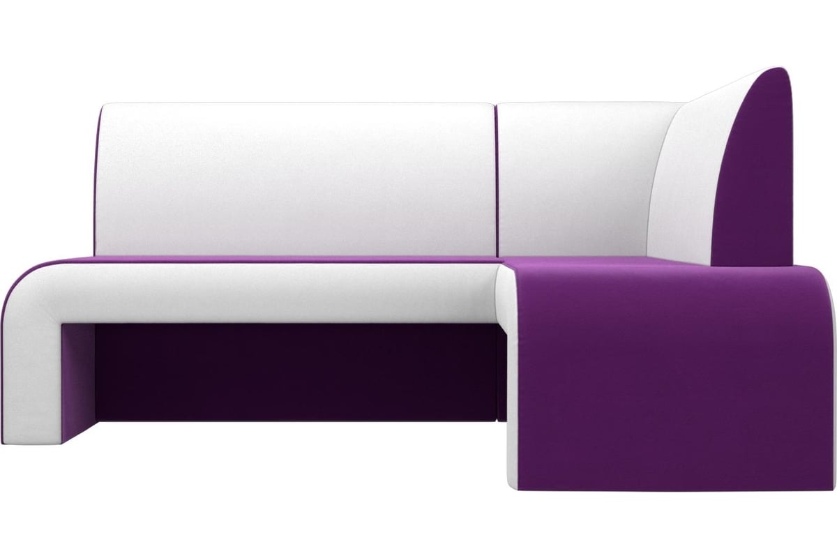 Кухонный угловой диван Лига диванов Кармен правый основа микровельвет фиолетовый, компаньон экокожа белая 28505