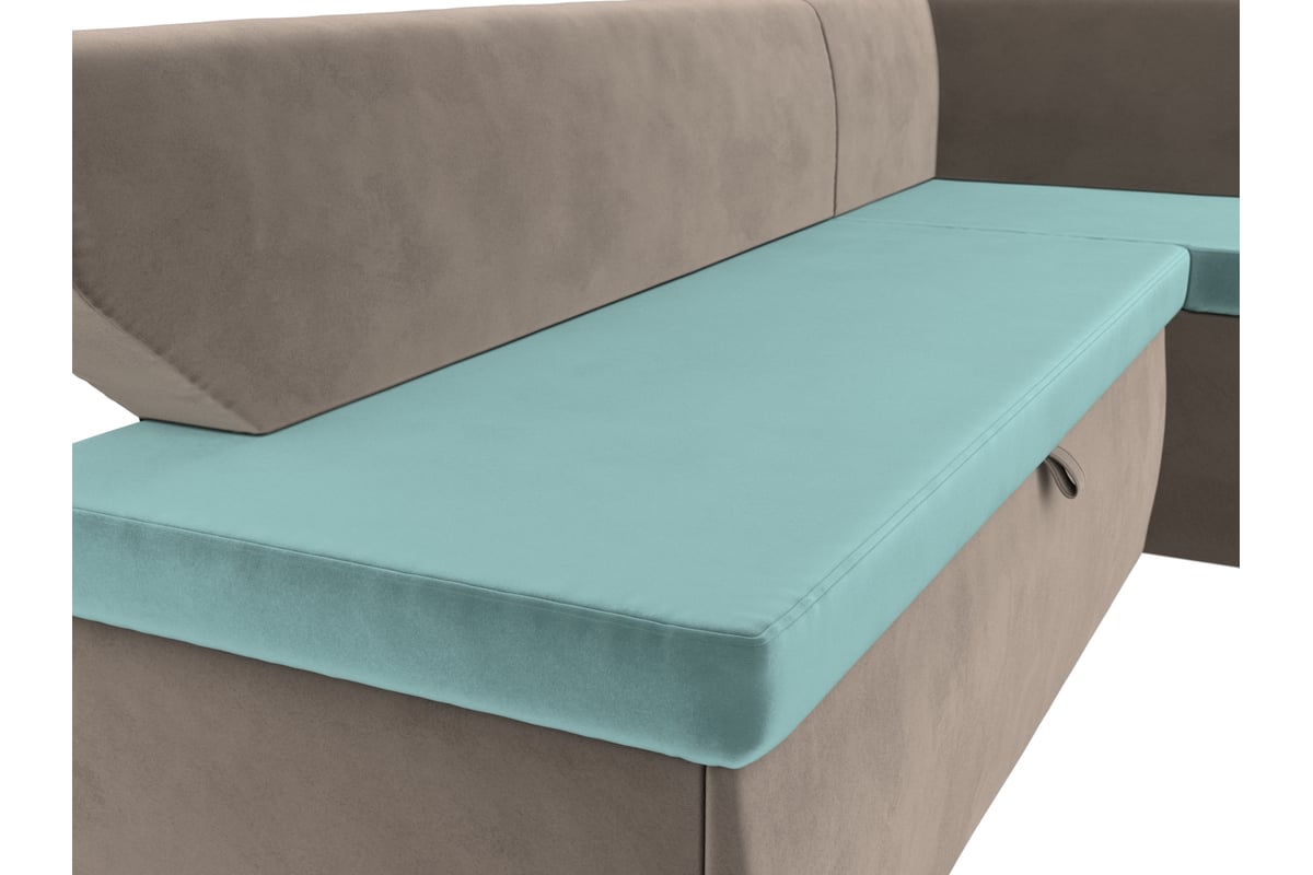 Кухонный угловой диван Лига диванов Омура правый основа велюр бирюзовый, компаньон велюр коричневый 113195