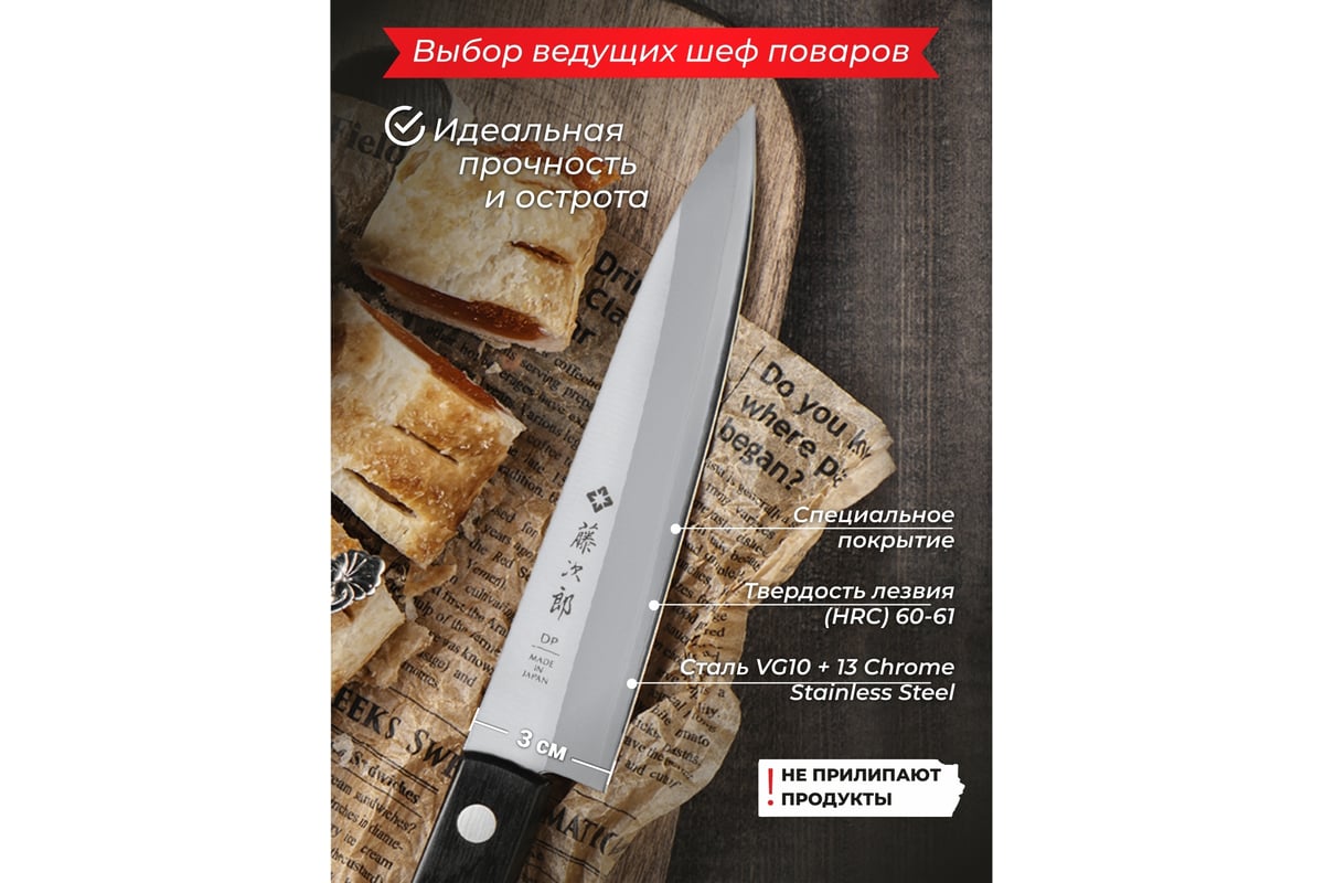 Японский кухонный нож Western Knife — это великолепный кухонный инструмент, созданный из стали VG-10, которая прославилась на весь мир своей прочностью и непревзойденными режущими качествами.