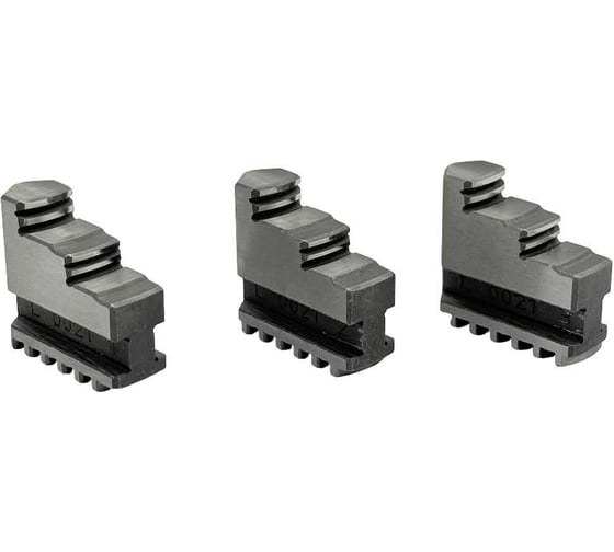 Универсальные прямые кулачки для оснащения трехкулачкового токарного патрона диаметром 100 мм. Предназначены для надежного зажима деталей цилиндрической формы. Изготовлены из качественной стали, обеспечивают высокую точность центрирования и устойчивость к износу при выполнении токарных работ.