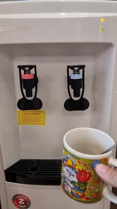 Поставили в классе для первоклассников, удобно что просто разливает воду без охлаждения и нагрева. Из за того что корпус пустой он очень лёгкий, подстраховали от падения т.к. дети бегают.