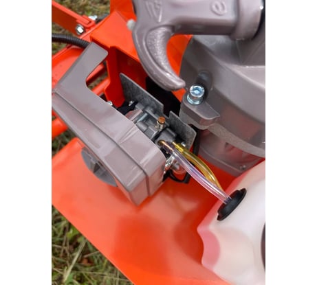 Функционирует за счет двухтактного бензинового двигателя мощностью 3.8 л.с. Благодаря ему он может обрабатывать землю на глубину до 150 мм.