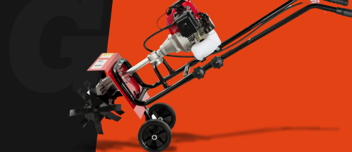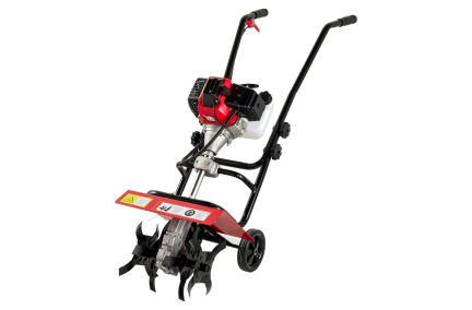 Функционирует за счет двухтактного бензинового двигателя мощностью 1.9 л.с. Благодаря ему он может обрабатывать землю на глубину до 100 мм.