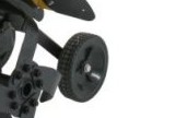 Наклонят машину, не рекомендуется, так как не заводится из за свеч. Рукоятки слабые. Машину чтобы держать на ходу рукоятку газа надо держать постоянно. Нет фиксатора газа. Колесы очень слабые.