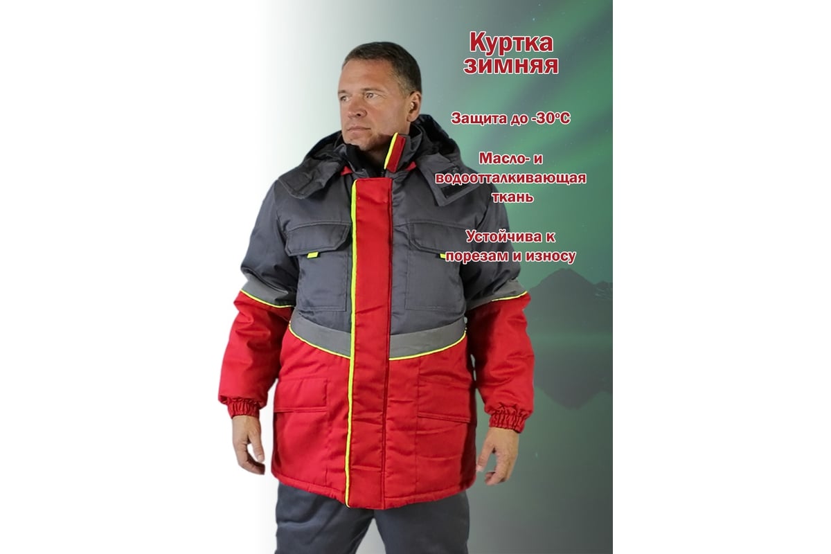 Куртка мужская утепленная Уралспецзащита "Северная широта" красный/серый, 44-46/182-188 з43-ку-кр-44-182