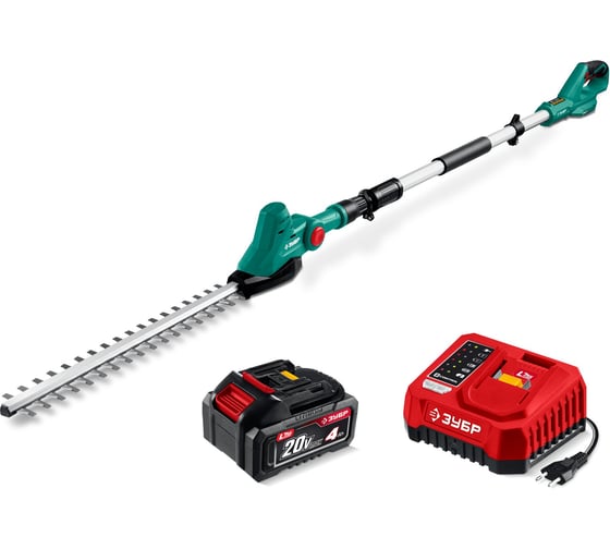 Кусторез аккумуляторный ЗУБР со штангой 20 В, 460 мм, 1 АКБ LMS (4 Ач), КРАШ-2046-41