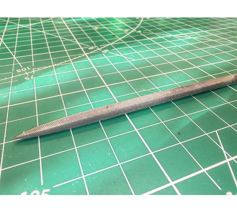 Очень неплохой надфиль с квадратным снчением. Заостренный носик, на котором тоже есть насечки. Блаодаря этому очень удобно растачивать небольшие квадратные или прямоугольные отверстия.