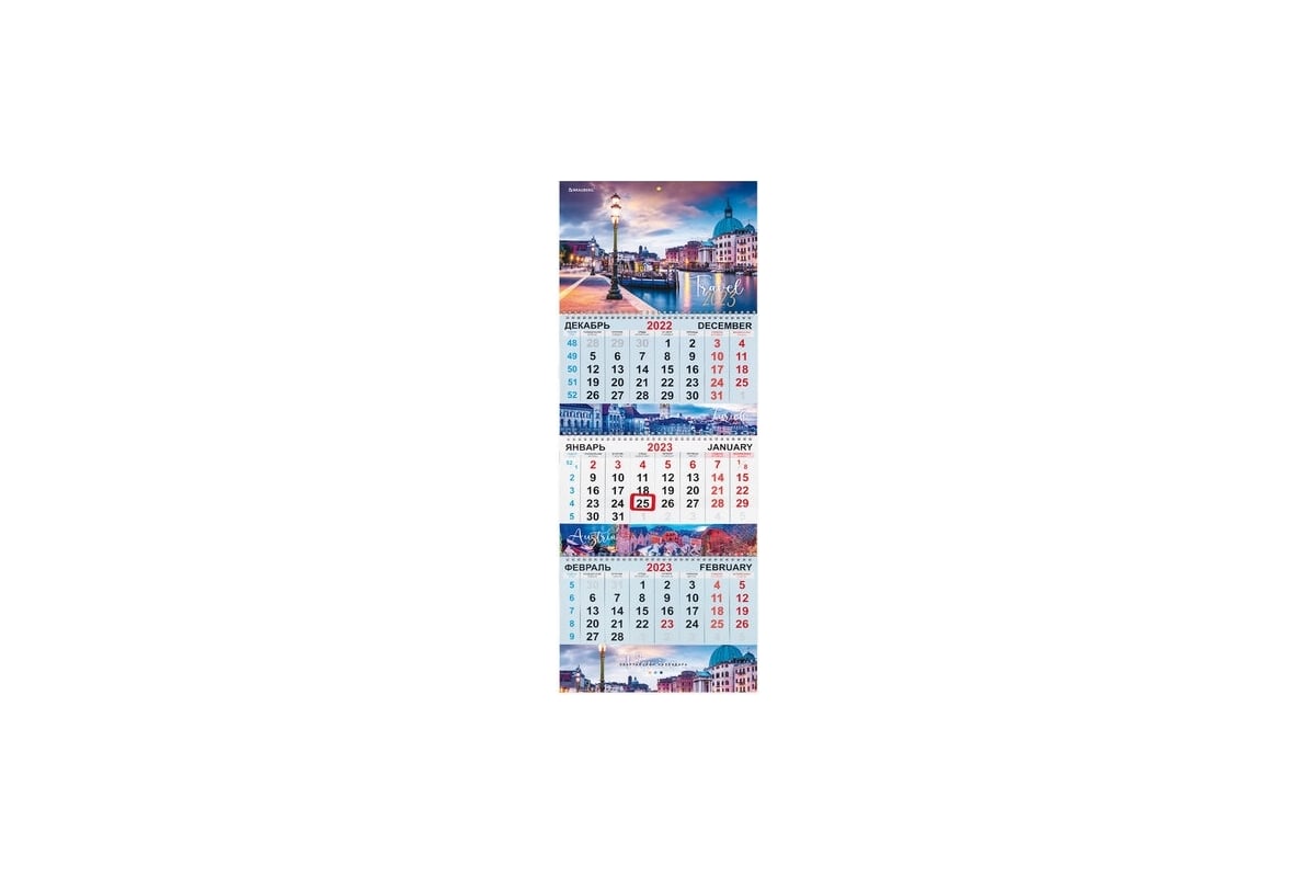 Квартальный календарь BRAUBERG на 2023 г, 3 блока, 3 гребня, с бегунком, мелованная бумага 114250