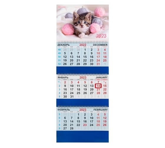 Квартальный календарь BRAUBERG на 2023 г, 3 блока, 3 гребня, с бегунком, мелованная бумага 114256