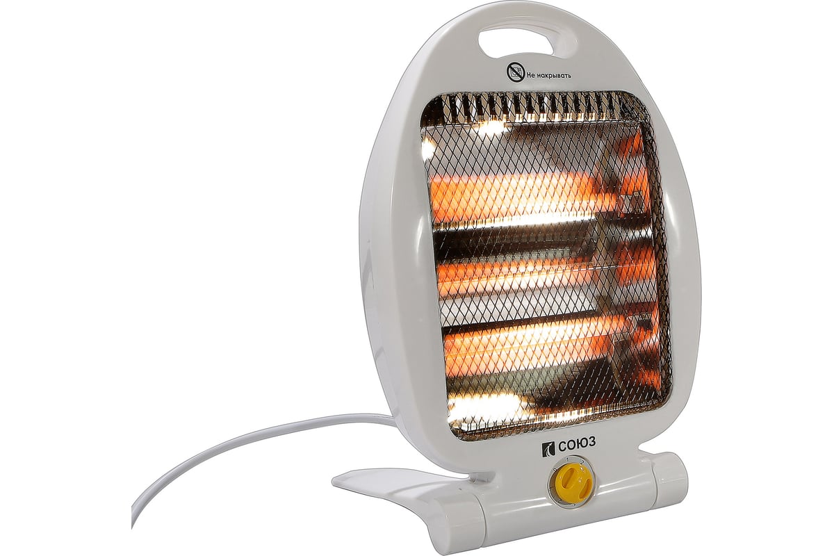 Кварцевый обогреватель СОЮЗ 2 режима, 400/800Вт, защита от перегрева и опрокидывания, КВС-800 обеспечивает быстрый нагрев помещения за счет тепловой энергии в виде инфракрасных волн, направленных на окружающие предметы.