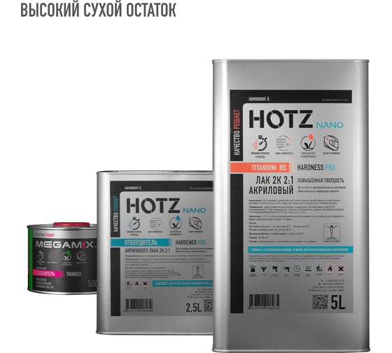 Лак автомобильный акриловый HOTZ 2К HS TITANIUM, Комплект (лак:5 л + отвердитель:2,5 л + разбавитель:0,5 л) 4673755228362