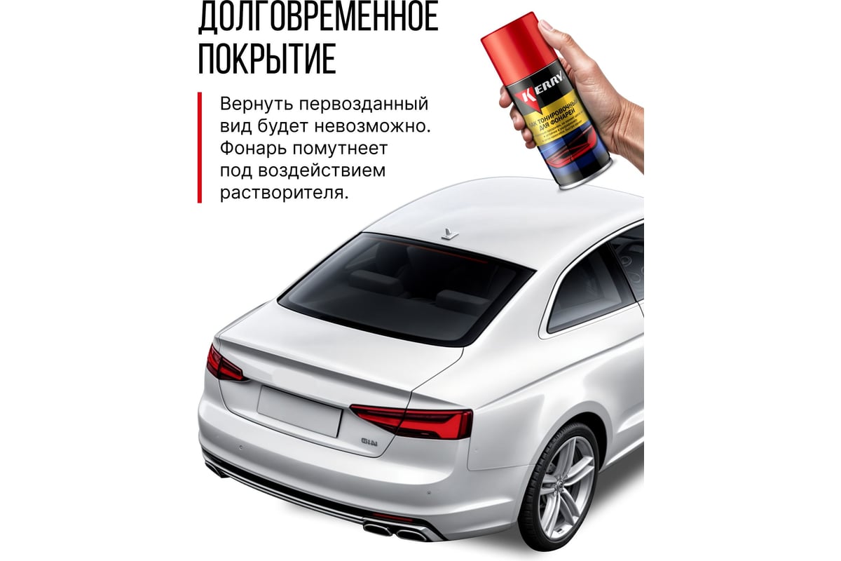 Высококачественный быстросохнущий акриловый лак для тонировки задних фонарей автомобилей. Имеет оптимальную прозрачность. При включении ламп беспрепятственно пропускает свет и не меняет цвета линз стоп-сигналов, указателей поворотов или заднего хода. Обладает превосходной адгезией к окрашиваемой поверхности и стойкостью к ультрафиолету.