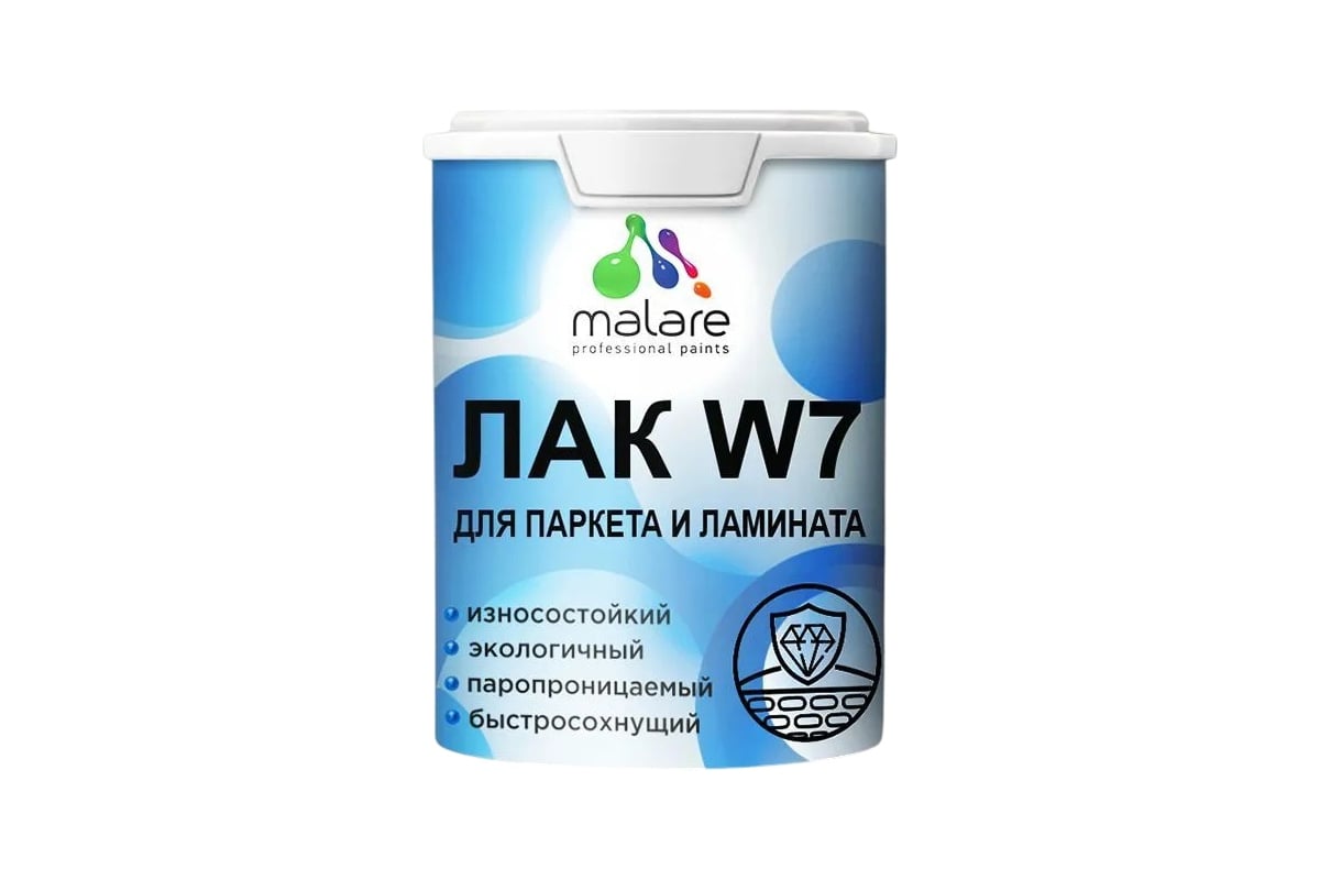 Специализированный универсальный лак Malare для защиты паркета и ламината, а так же для декорирования деревянных и минеральных поверхностей (кирпич, бетон, камень и тд) внутри и снаружи помещений от атмосферных осадков, физического износа, насекомых, грибковых заражений.