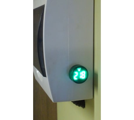 Меряет напряжение достаточно точно (±пара вольт). Приятный зеленый свет.