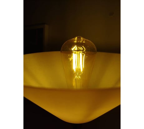 Красивое свечение, золотистый тёплый свет. Стеклянная колба. Нет мерцания. Сама по себе лампа эстетичная и не режет глаза. Яркости лампы в торшере достаточно чтобы читать под ней, подходит для вечернего освещения