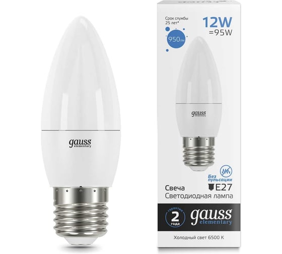 Вопросы и ответы о лампе Gauss Elementary Свеча 12W 950lm 6500K E27 LED 30232