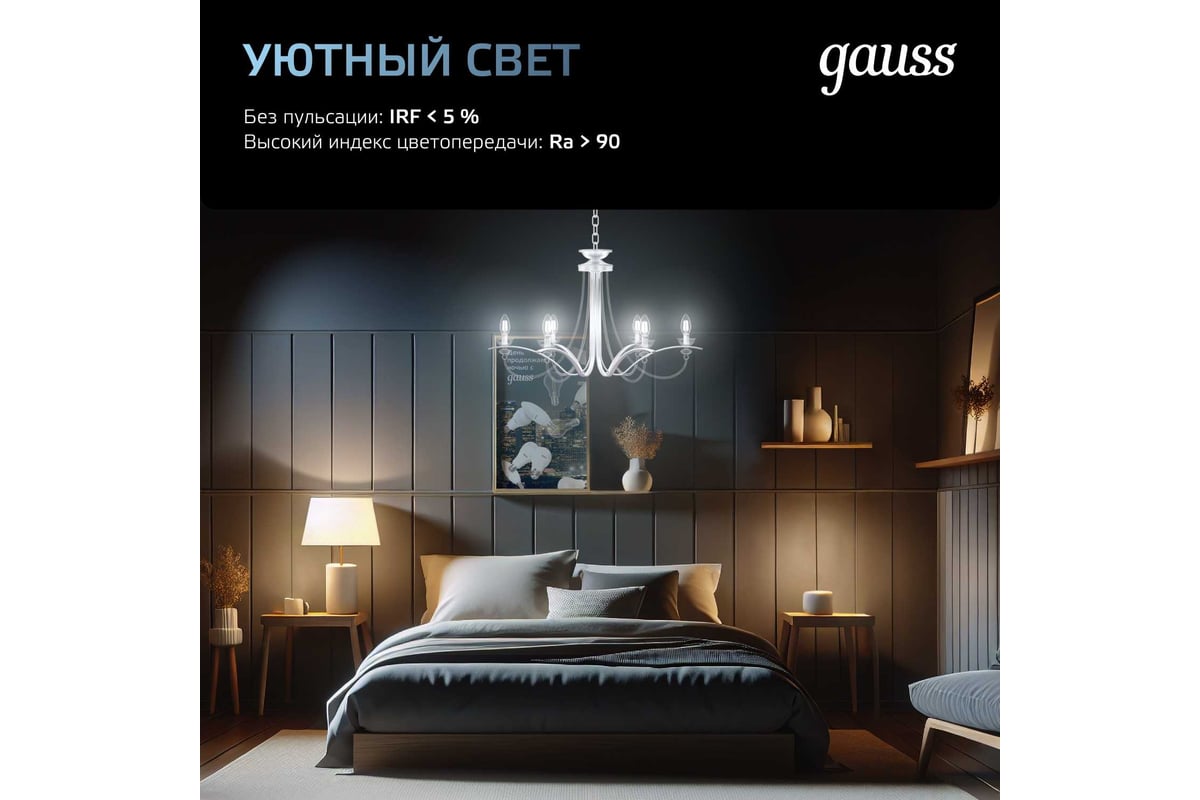 Вопросы и ответы о лампе Gauss Filament Свеча 11W 830lm 4100К Е27 LED 1/10/50 103802211