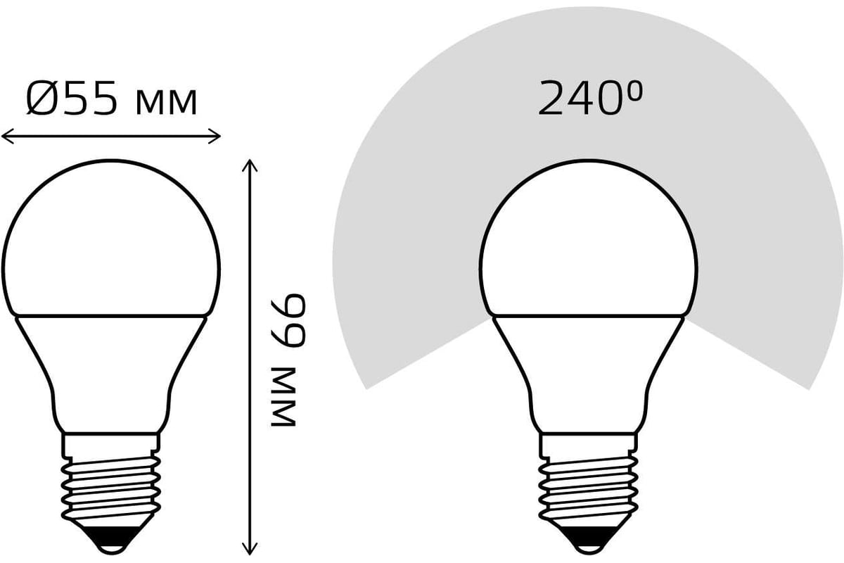 Технические характеристики Gauss LED A60 E27 7W 3000K 102502107