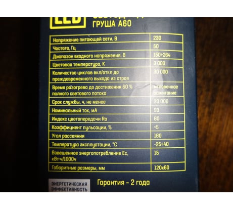 Проверенная временем фирма IEK. У лампочки хорошие характеристики за свою цену. Приятная гладкая упаковка.