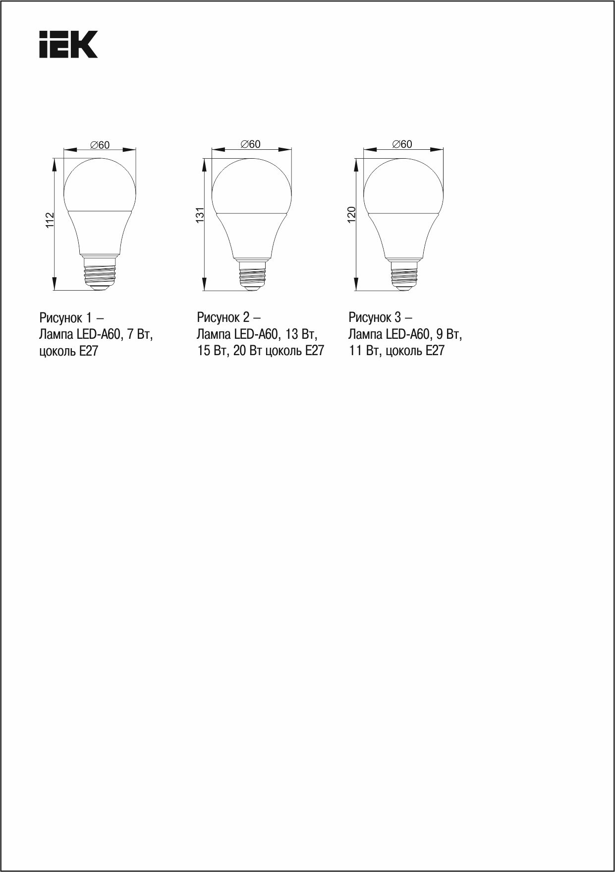 Технические характеристики IEK LED, A60, 20вт, 230В, 3000К, E27 LLE-A60-20-230-30-E27