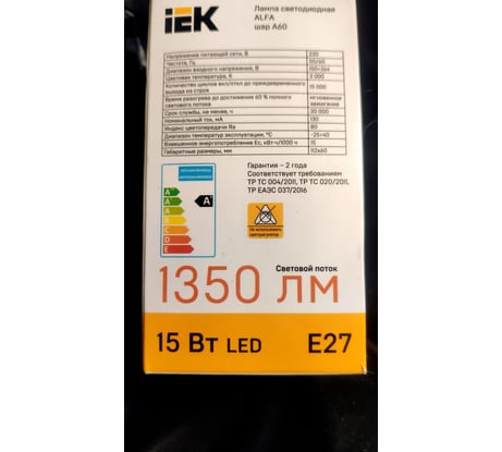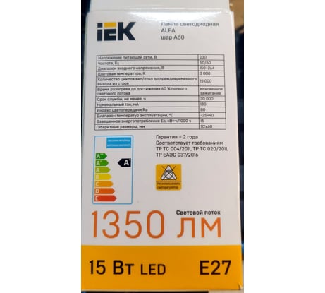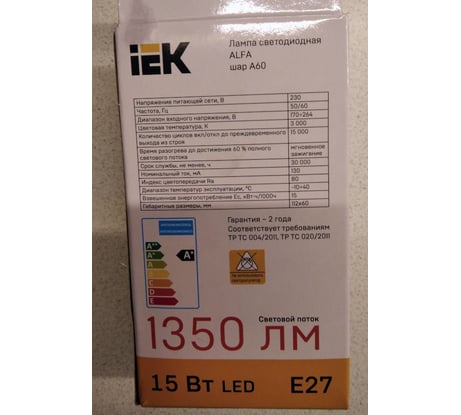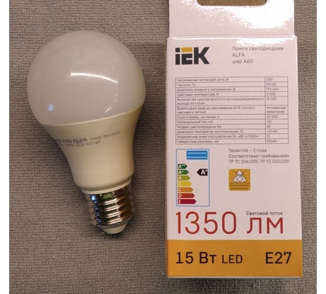 Лампа IEK LED ALFA A60 показала себя с лучшей стороны. Потребляя всего 15 Вт, она даёт качественный и яркий свет, сопоставимый с обычной лампочкой на 100 Вт. Тёплый белый свет с температурой 3000 К создаёт уютную атмосферу в доме. Форма классической груши и стандартный цоколь E27 подходят для большинства светильников. Покупкой доволен, рекомендую тем, кто ищет качественную энергосберегающую лампу.