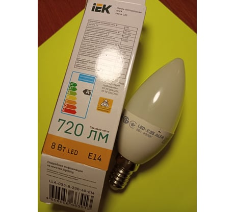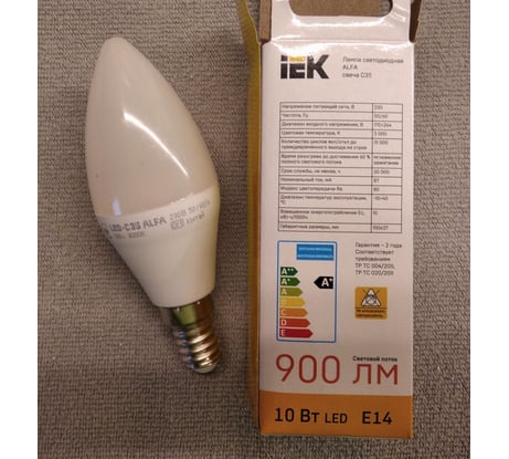 Светодиодная лампа IEK ALFA C35 понравилась по качеству и цене, достаточно мощная для своих компактных размеров, имеет матовый рассеиватель, теплый белый свет, длительный срок службы.
