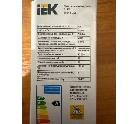 Вопросы и ответы о лампе IEK LED ALFA C35 свеча 6Вт 230В 4000К E14 LLA-C35-6-230-40-E14