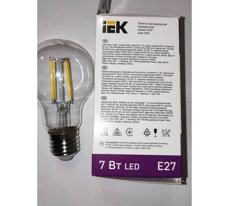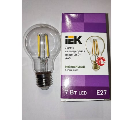 Отзывы о лампе IEK серия 360 LED, A60, прозрачная, 7вт, 230В, 4000К, E27 LLF-A60-7-230-40-E27-CL