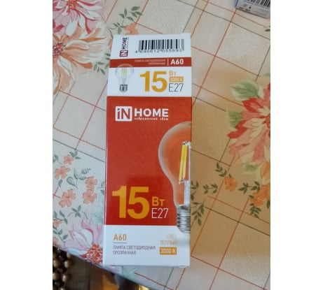 Лампа IN HOME сд LED-A60-deco 15Вт 230В Е27 3000К 1480Лм прозрачная 4690612055893
