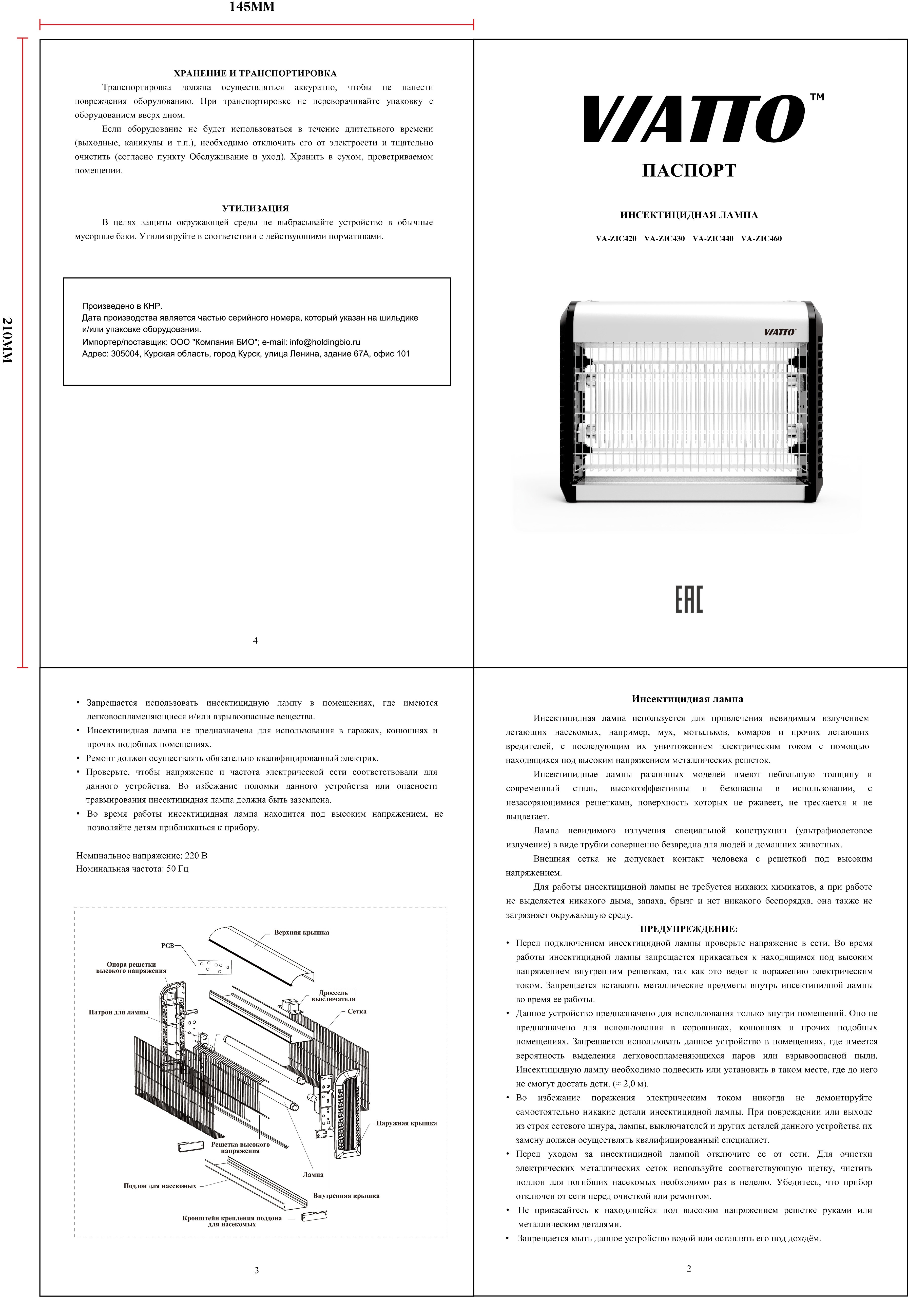 Лампа инсектицидная Viatto Commercial VA-ZIC430