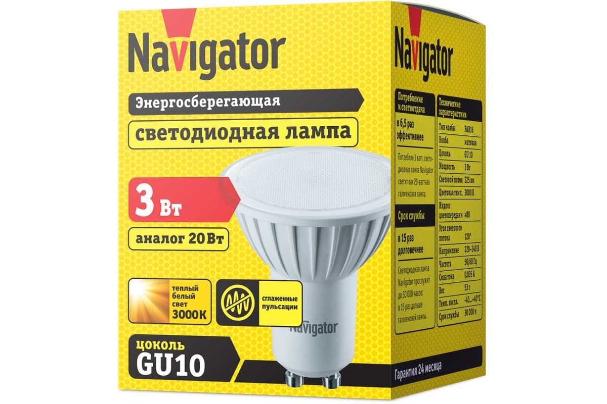 Вопросы и ответы о лампе Navigator NLL PAR16-3-230-3K-GU10 94256