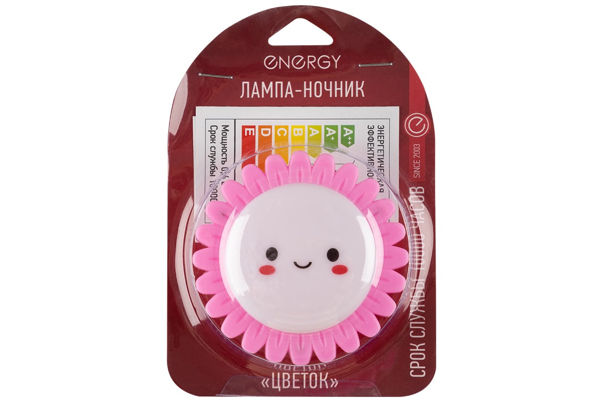 Лампа-Ночник ENERGY EN-NL-5 Цветок розовый 104275 с выключателем на корпусе. Имеет срок службы 10 000 ч. Питание от сети 220-240В, 50-60Гц.