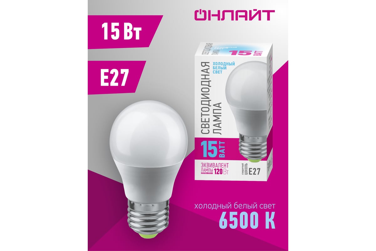 Лампа ОНЛАЙТ 90 439 OLL-G45-15-230-6.5K-E27-PROMO 90439