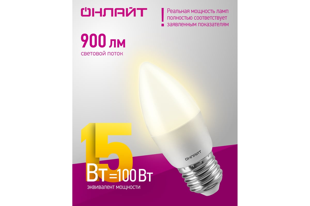 Лампа ОНЛАЙТ 90 455 OLL-C37-15-230-2.7K-E27-FR 90455