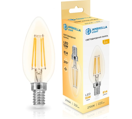 Лампа светодиодная Ambrella Light Filament LED C35 15W E14 2700K 220-240V 351513