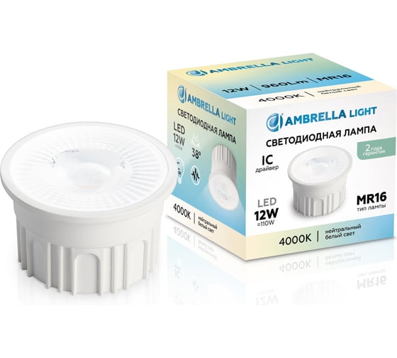 Лампа светодиодная Ambrella Light LED MR16-PR 12W IC 4000K 220-240V 38 212302