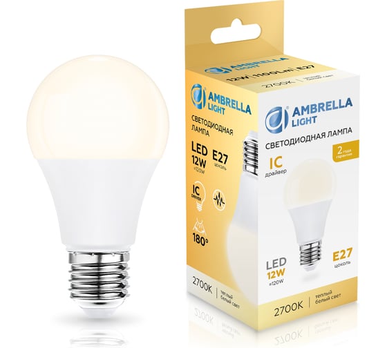 Лампа светодиодная Ambrella Light LED A60 12W IC E27 2700K 175-265V 601203