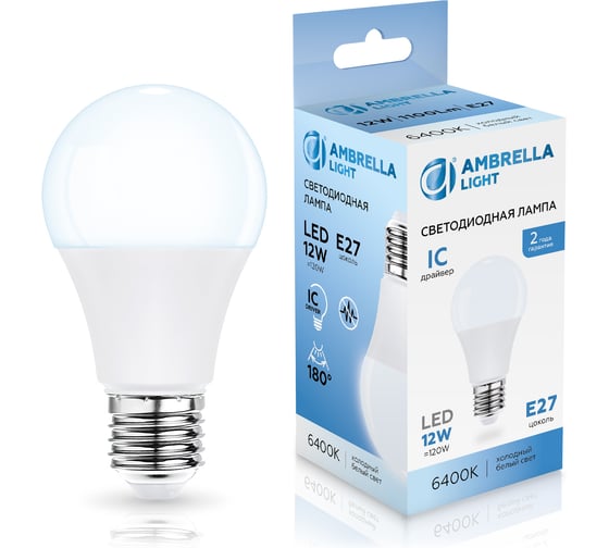Лампа светодиодная Ambrella Light LED A60 12W IC E27 6400K 175-265V 601206