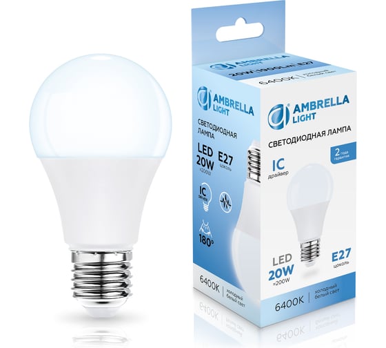Лампа светодиодная Ambrella Light LED A60 20W IC E27 6400K 175-265V 602006