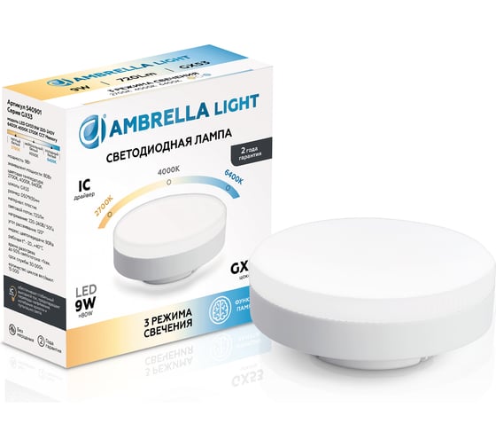 Лампа светодиодная Ambrella Light LED GX53 9W IC 220-240V 6400K 4000K 2700K CCT Memory 540901