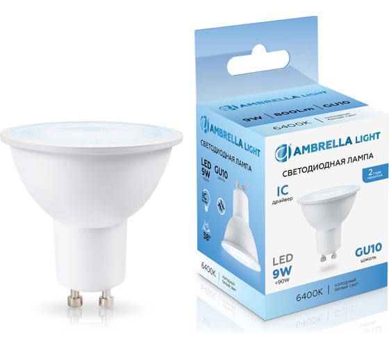 Лампа светодиодная AMBRELLA LIGHT LED MR16 9W IC GU10 6400K 175-265V 38 190906