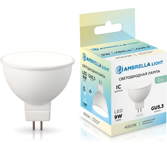 Лампа светодиодная Ambrella Light LED MR16 9W IC GU5.3 4000K 175-265V 160904